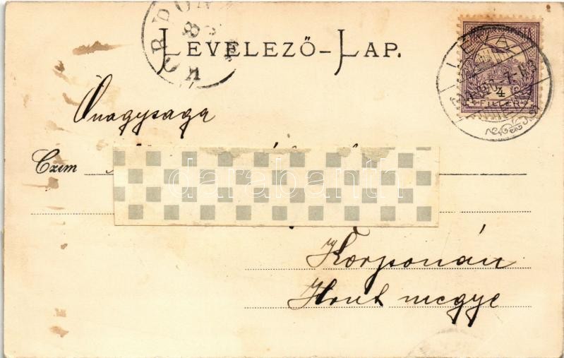 1900 Léva, Levice; Szentháromság szobor, várrom, Kaszinó épület. Schub... https://www.darabanth.com/de/38-Gross-Auktion/38.1/Ansichtskarten/Slowakei~15649/1900-Leva-Levice-Szentharomsag-szobor-varrom-Kaszino-epulet-Schubert-Pal-kiadasa-Tri~II2612239