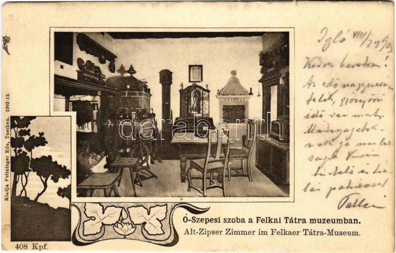 1903 Felka, Velka (Poprád); Ó-Szepesi szoba a Tátra múzeumban, belső. Feitzinger Ede 1902-12. 408 Kpf. / Vysoké Tatry museum interior, Spis room. Art Nouveau