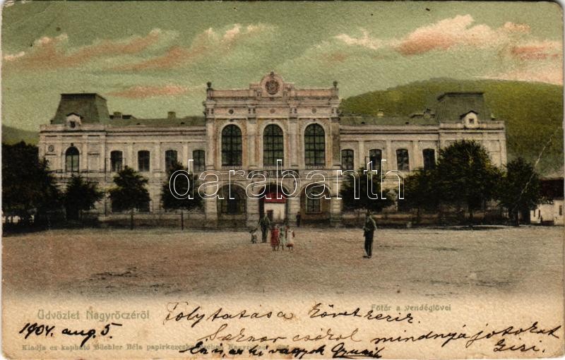 Beschreibung: 1904 Nagyrőce, Gross-Rauschenbach, Velká Revúca; Fő tér, vendéglő / main square, restaurant (fa)