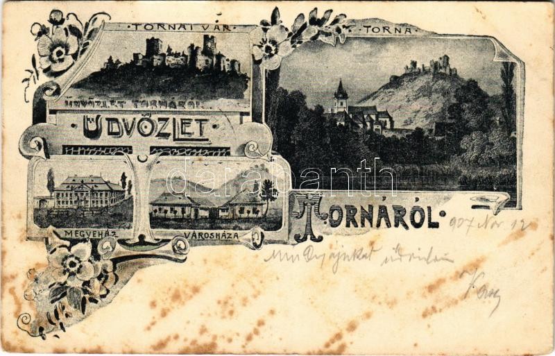 Beschreibung: 1907 Torna, Abaúj-Torna, Turnau, Turna nad Bodvou; vár, megyeház, városház / hard / castle, county and town halls. Art Nouveau, floral (fl)