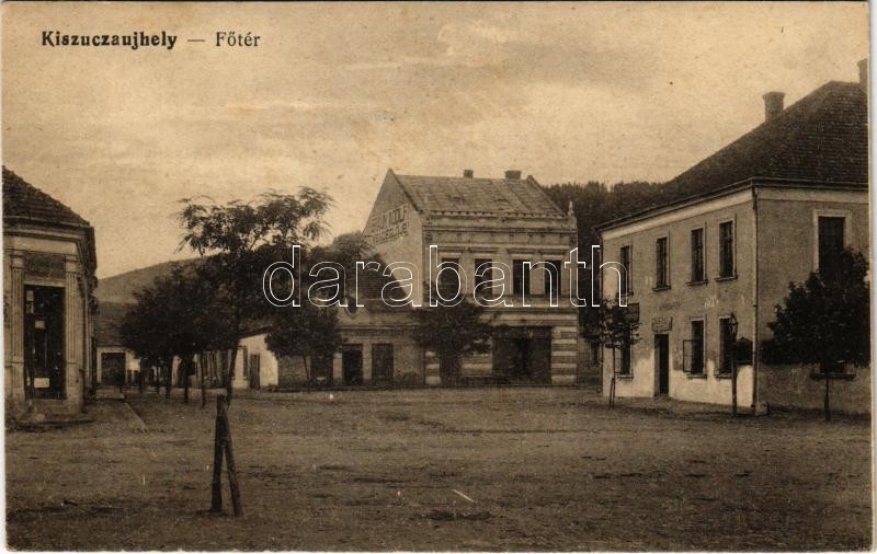 1916 Kiszucaújhely, Kysucké Nové Mesto; Fő tér, Braun Adolf és Balek József vendéglője, városháza, üzlet / main square, restaurants and hotell, shops, town hall