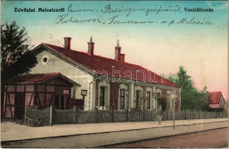 1918 Melcsic, Melcice (Trencsén); vasútállomás / railway station https://www.darabanth.com/de/38-Gross-Auktion/38.1/Ansichtskarten/Slowakei~15649/1918-Melcsic-Melcice-Trencsen-vasutallomas-railway-station~II2591807