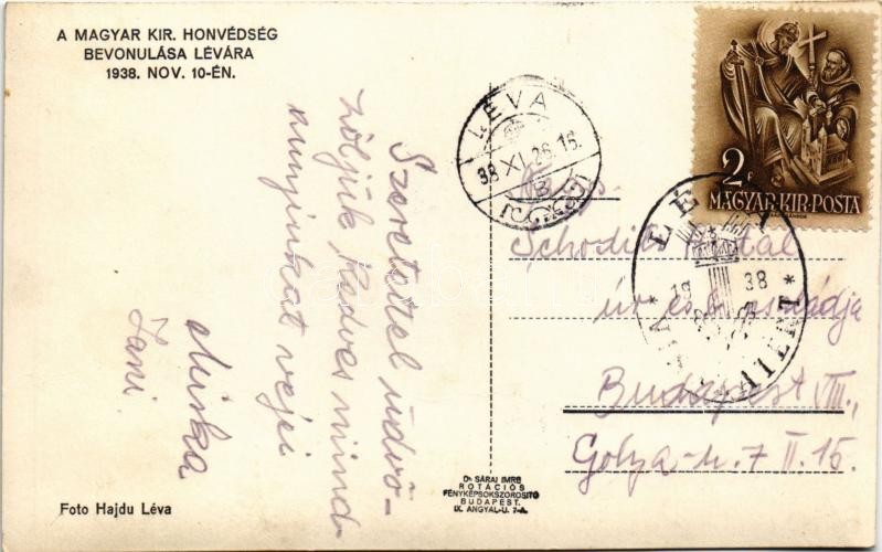Beschreibung: 1938 Léva, Levice; bevonulás, Gambaty üzlete. Foto Hajdu / entry of the Hungarian troops, shops + "1938 Léva visszatért" So. Stpl