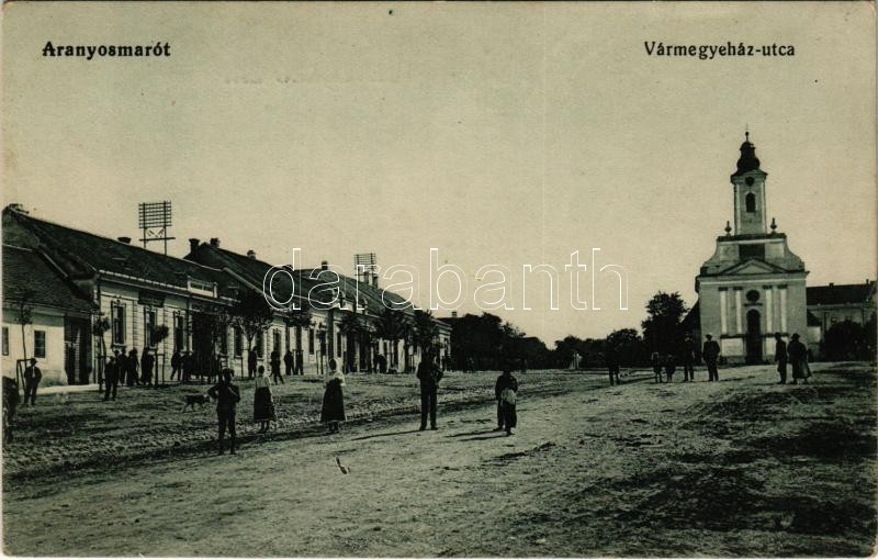 Aranyosmarót, Zlaté Moravce; Vármegyeház utca, templom. Steiner Samu k... https://www.darabanth.com/de/38-Gross-Auktion/38.1/Ansichtskarten/Slowakei~15649/Aranyosmarot-Zlate-Moravce-Varmegyehaz-utca-templom-Steiner-Samu-kiadasa-street-church-~II2613906