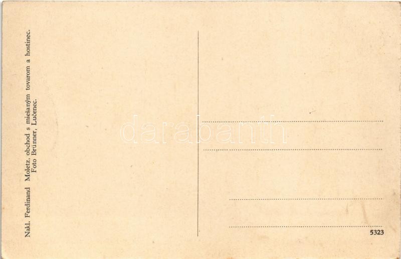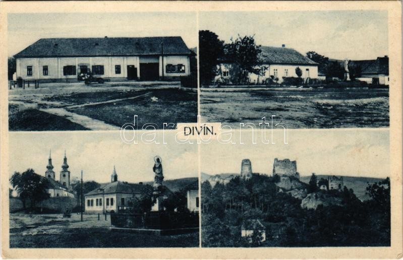 Divény, Diwein, Divín; vár, községháza, üzlet, autó. Ferdinand Moletz, Foto Brünner / castle, town hall, shop, sutomobile