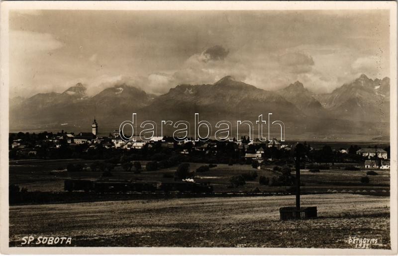 Beschreibung: Szepesszombat, Spisská Sobota; vasút, robogó gőzmozdony, vonat / railway, locomotive, train. Petrovits 1931. photo