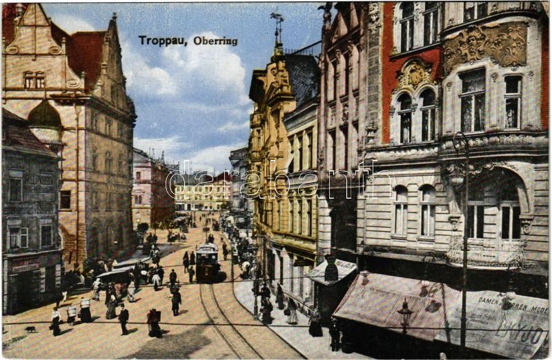 1919 Opava, Troppau; Oberring / square, tram, shops of Robert Zobel an... https://www.darabanth.com/de/38-Gross-Auktion/38.1/Ansichtskarten/Tschechische-Republik~15666/1919-Opava-Troppau-Oberring-square-tram-shops-of-Robert-Zobel-and-L-Kyjo-gluemark~II2577392