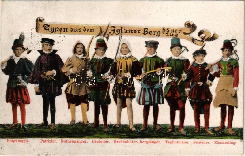 1920 Jihlava, Typen aus dem Iglauer Berghäuerzug https://www.darabanth.com/de/38-Gross-Auktion/38.1/Ansichtskarten/Tschechische-Republik~15666/1920-Jihlava-Typen-aus-dem-Iglauer-Berghauerzug~II2577416