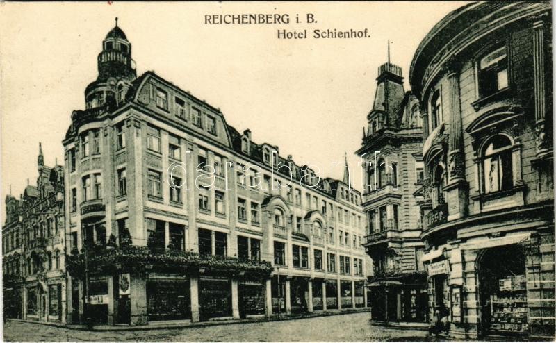 1923 Liberec, Reichenberg; Hotel Schienhof (EK) https://www.darabanth.com/de/38-Gross-Auktion/38.1/Ansichtskarten/Tschechische-Republik~15666/1923-Liberec-Reichenberg-Hotel-Schienhof-EK~II2577594