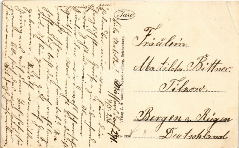 Beschreibung: 1923 Liberec, Reichenberg; Hotel Schienhof (EK)