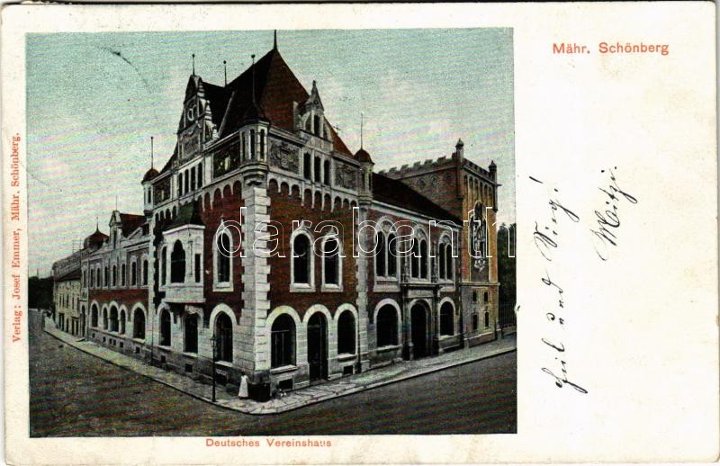 Sumperk, Mährisch Schönberg; Deutsches Vereinshaus / German Clubhouse ... https://www.darabanth.com/de/38-Gross-Auktion/38.1/Ansichtskarten/Tschechische-Republik~15666/Sumperk-Mahrisch-Schonberg-Deutsches-Vereinshaus-German-Clubhouse-creases~II2578514