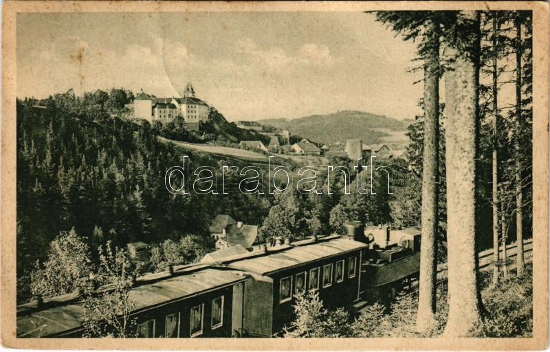 Beschreibung: Vimperk, Winterberg im Böhmerwald; Schloss / castle, railway, train (fl)