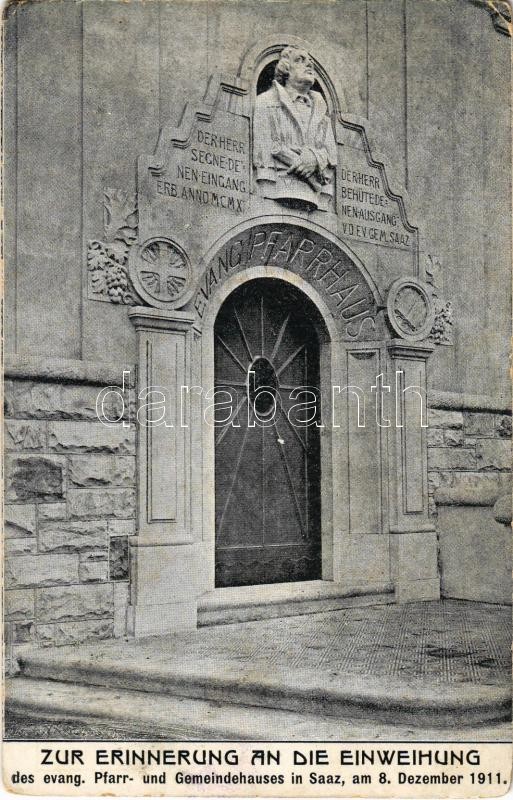 Zatec, Saaz; Zur Erinnerung an die Einweihung des evang. Pfarr- und Gemeindehauses am 8. Dezember 1911 / To commemorate the inauguration of the Protestant rectory (EB)
