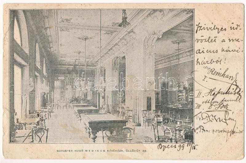 1899 (Vorläufer) Budapest VIII. Schuster Hugó Medicus kávéháza, belső ... https://www.darabanth.com/de/38-Gross-Auktion/38.1/Ansichtskarten/Ungarn~15644/1899-Vorlaufer-Budapest-VIII-Schuster-Hugo-Medicus-kavehaza-belso-biliardasztalokkal-Ul~II2615962