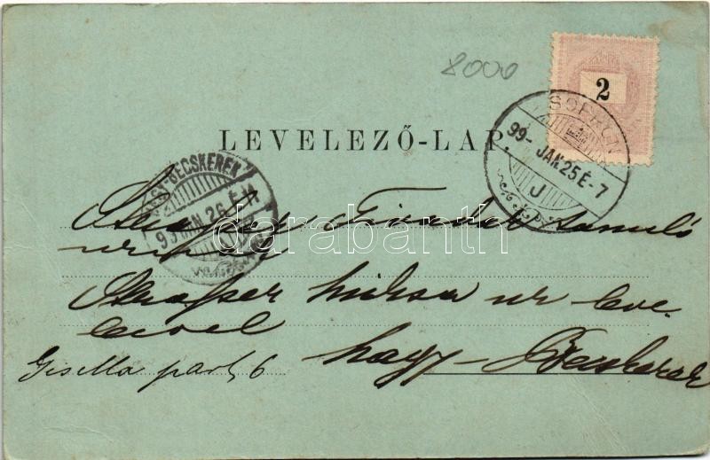 1899 (Vorläufer) Sopron, Oedenburg; Brennbergbánya, Bánya iroda, szénbánya, iparvasút, akna / Brennberg Kanzlei, Sopron-Schacht, Aus Zehreichenwald. Verlag No. 49. L. F. Kummert, Art Nouveau, floral (EB)
