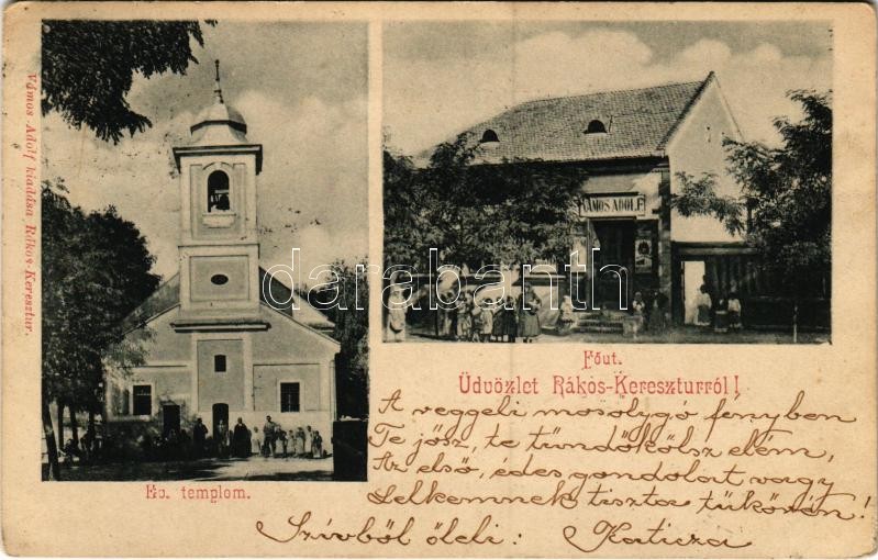 Beschreibung: 1900 Budapest XVII. Rákoskeresztúr, Evangélikus templom, Fő út, Vámos Adolf üzlete és saját kiadása (EK)