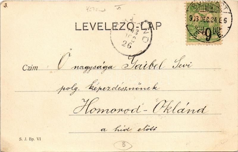 Beschreibung: 1903 Budapest VI. Andrássy út és Bocskay szobor, omnibusz (EK)
