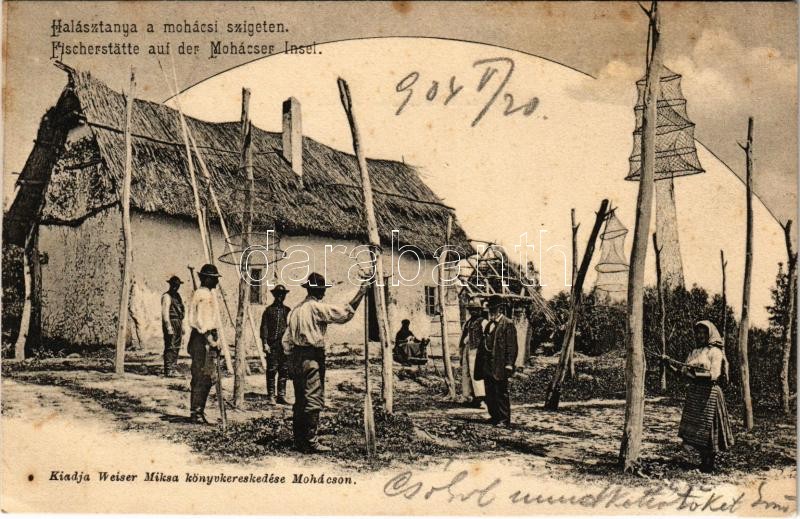 1904 Mohács, Halásztanya a szigeten, halászháló szövés. Weiser Miksa k... https://www.darabanth.com/de/38-Gross-Auktion/38.1/Ansichtskarten/Ungarn~15644/1904-Mohacs-Halasztanya-a-szigeten-halaszhalo-szoves-Weiser-Miksa-kiadasa~II2611667