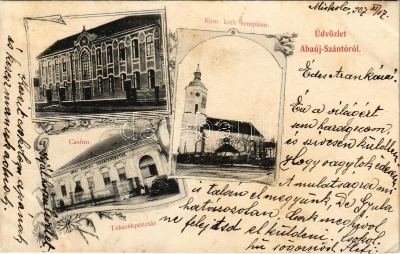 1907 Abaújszántó, Római katolikus templom, Kaszinó (casino), Takarékpé... https://www.darabanth.com/de/38-Gross-Auktion/38.1/Ansichtskarten/Ungarn~15644/1907-Abaujszanto-Romai-katolikus-templom-Kaszino-casino-Takarekpenztar-Art-Nouveau-fl~II2597601