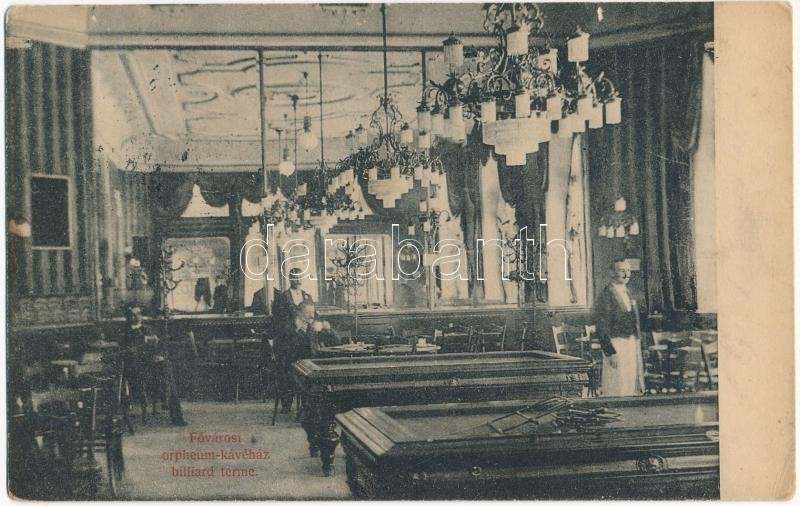 1908 Budapest VI. Fővárosi Orpheum Kávéház biliárdterme, belső (fl) https://www.darabanth.com/de/38-Gross-Auktion/38.1/Ansichtskarten/Ungarn~15644/1908-Budapest-VI-Fovarosi-Orpheum-Kavehaz-biliardterme-belso-fl~II2599043