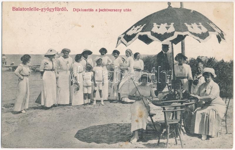 1914 Balatonlelle-gyógyfürdő, Díjkiosztás a jachtverseny után, hölgyek... https://www.darabanth.com/de/38-Gross-Auktion/38.1/Ansichtskarten/Ungarn~15644/1914-Balatonlelle-gyogyfurdo-Dijkiosztas-a-jachtverseny-utan-holgyek-napernyo-alatt-WollC3~II2591331