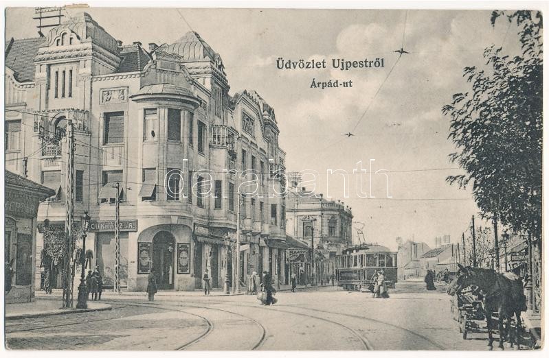 1915 Budapest IV. Újpest, Árpád út, villamos, cukrászda, üzletek, lova... https://www.darabanth.com/de/38-Gross-Auktion/38.1/Ansichtskarten/Ungarn~15644/1915-Budapest-IV-Ujpest-Arpad-ut-villamos-cukraszda-uzletek-lovaskocsi-Salgo-fele-kia~II2609903