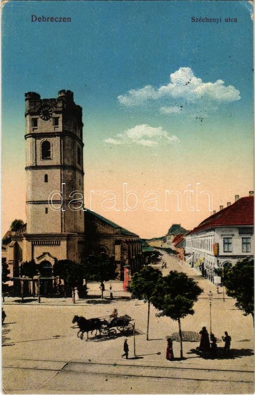 1916 Debrecen, Széchenyi utca. Vasúti levelezőlapárusítás 19. 1916. https://www.darabanth.com/de/38-Gross-Auktion/38.1/Ansichtskarten/Ungarn~15644/1916-Debrecen-Szechenyi-utca-Vasuti-levelezolaparusitas-19-1916~II2573687
