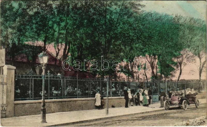 Beschreibung: 1917 Budapest XIV. Zugló, Schrettner Márton vendéglője a saját házában, autó. Gyarmat utca 42. (fl)