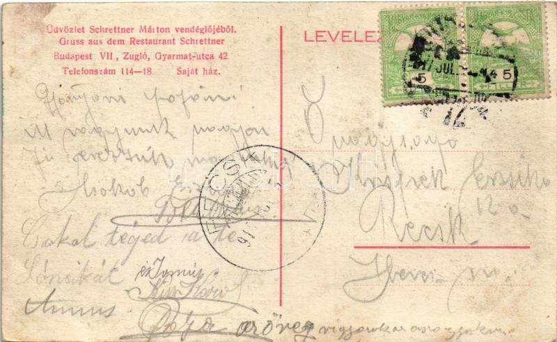 1917 Budapest XIV. Zugló, Schrettner Márton vendéglője a saját házában... https://www.darabanth.com/de/38-Gross-Auktion/38.1/Ansichtskarten/Ungarn~15644/1917-Budapest-XIV-Zuglo-Schrettner-Marton-vendegloje-a-sajat-hazaban-auto-Gyarmat-utca-4~II2590948
