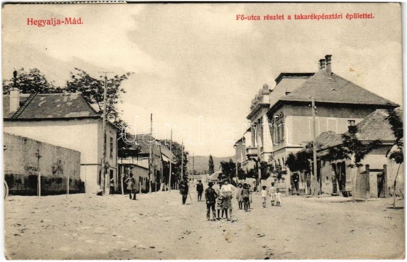 1921 Mád (Hegyalja), Fő utca, Takarékpénztár épület (EK) https://www.darabanth.com/de/38-Gross-Auktion/38.1/Ansichtskarten/Ungarn~15644/1921-Mad-Hegyalja-Fo-utca-Takarekpenztar-epulet-EK~II2609914