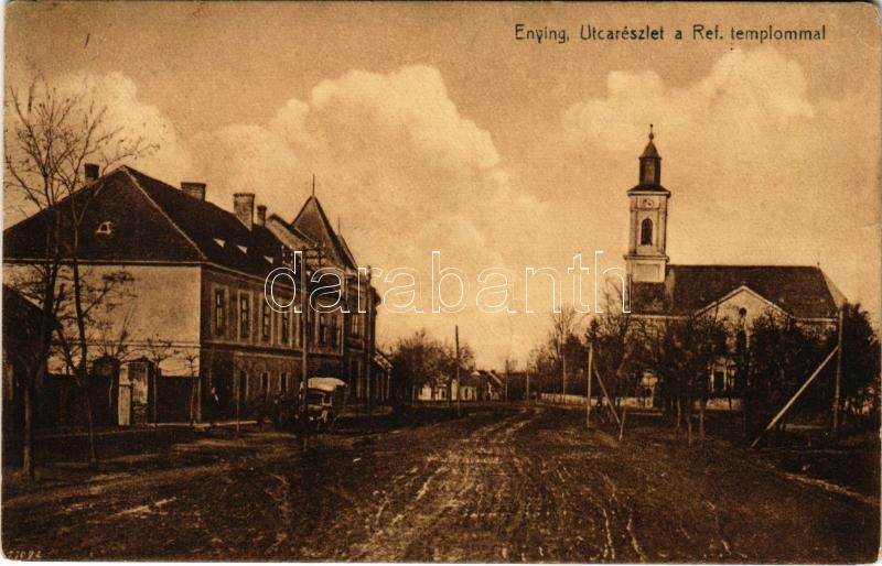 1933 Enying, utca, református templom, autó (EB) https://www.darabanth.com/de/38-Gross-Auktion/38.1/Ansichtskarten/Ungarn~15644/1933-Enying-utca-reformatus-templom-auto-EB~II2609817