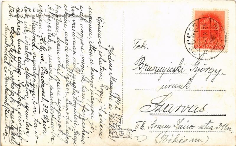 1942 Budakeszi, Csepeli Weiss Manfréd alapítványi szanatórium (fl) https://www.darabanth.com/de/38-Gross-Auktion/38.1/Ansichtskarten/Ungarn~15644/1942-Budakeszi-Csepeli-Weiss-Manfred-alapitvanyi-szanatorium-fl~II2606191