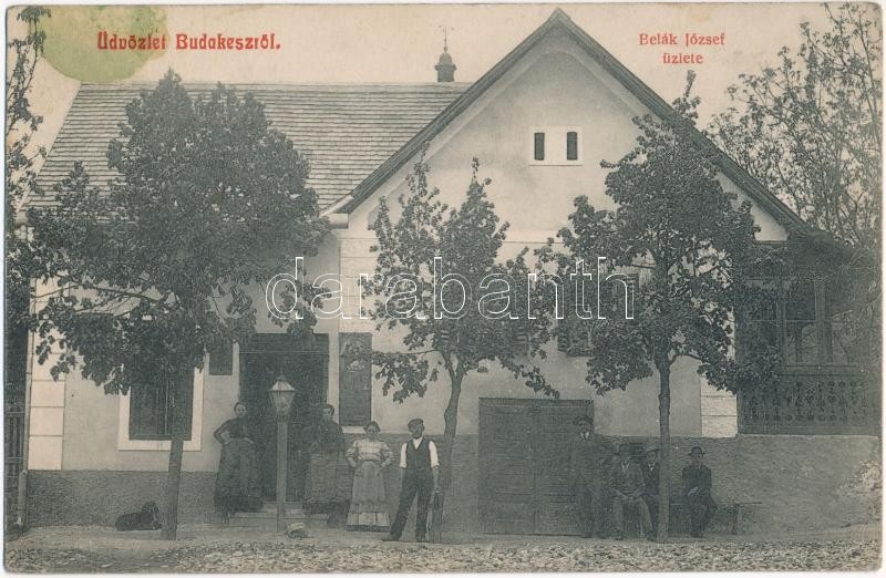 Budakeszi, Belák József üzlete (fl) https://www.darabanth.com/de/38-Gross-Auktion/38.1/Ansichtskarten/Ungarn~15644/Budakeszi-Belak-Jozsef-uzlete-fl~II2591294