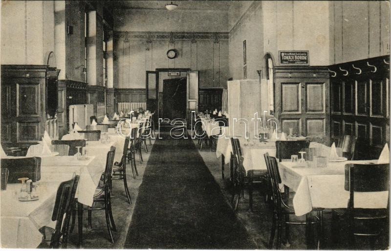 Beschreibung: Budapest II. Pálffy étterem, Mayer Pál tulajdonos, belső, Tokaji borok. Pálffy tér 4. (ma Bem József tér)