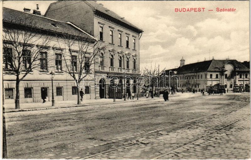 Beschreibung: Budapest II. Széna tér, villamosok, régi Szent János kórház, Seifert Dezső kávéháza. Ádám Herman kiadása