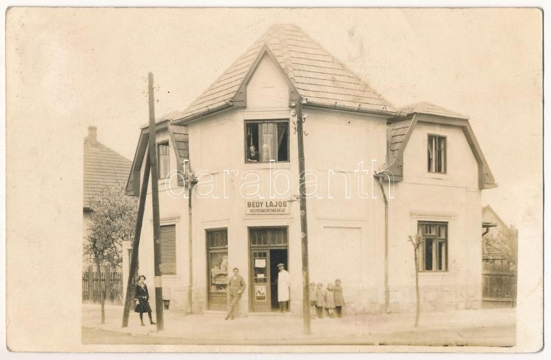 Beschreibung: Budapest IV. Újpest (régen Rákospalota), Bédy Lajos vegyeskereskedés üzlete. Erdély utca 3. (ma Tavasz utca) photo