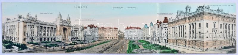 Budapest V. Szabadság tér, Tőzsde palota, Adria M. kir. tengerhajózási rt., City kávéház, Magyar kereskedelmi csarnok, Osztrák-magyar bank. Három részes kinyitható panorámalap / 3-tiled folding panoramacard