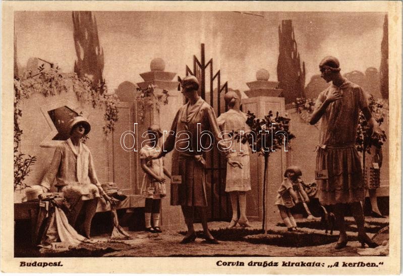 Budapest VIII. Corvin Áruház kirakata: A kertben. https://www.darabanth.com/de/38-Gross-Auktion/38.1/Ansichtskarten/Ungarn~15644/Budapest-VIII-Corvin-Aruhaz-kirakata-A-kertben~II2607090