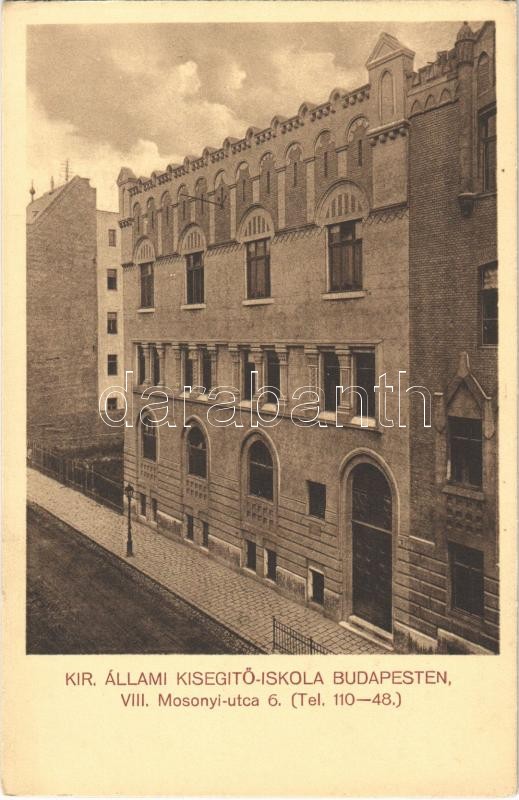 Budapest VIII. Kir. Állami Kisegítő iskola. Mosonyi utca 6. segélylap https://www.darabanth.com/de/38-Gross-Auktion/38.1/Ansichtskarten/Ungarn~15644/Budapest-VIII-Kir-Allami-Kisegito-iskola-Mosonyi-utca-6-segelylap~II2480477