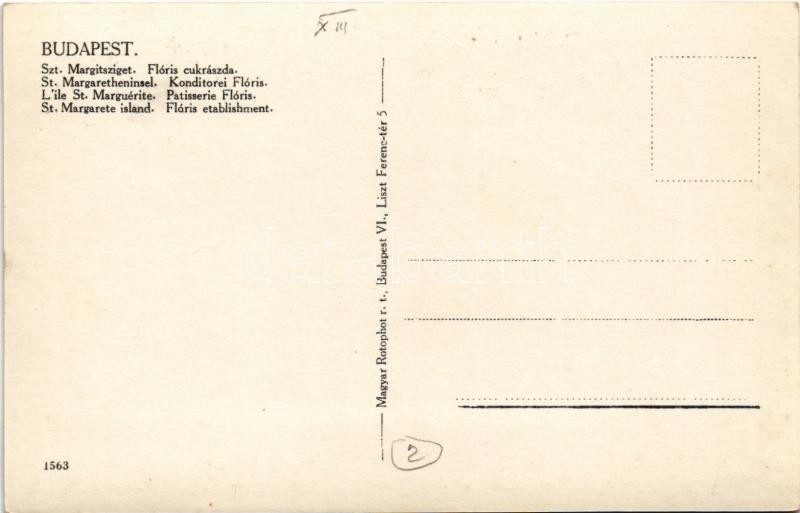 Budapest XIII. Margitsziget, Flóris cukrászda kerthelyisége https://www.darabanth.com/de/38-Gross-Auktion/38.1/Ansichtskarten/Ungarn~15644/Budapest-XIII-Margitsziget-Floris-cukraszda-kerthelyisege~II2607310