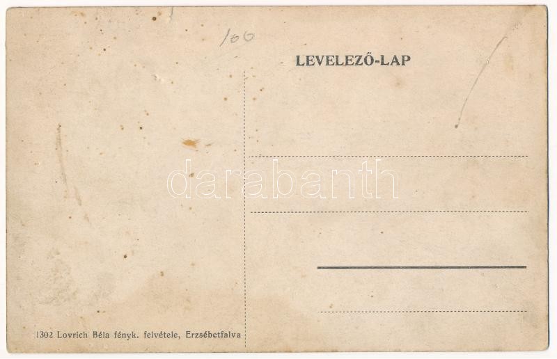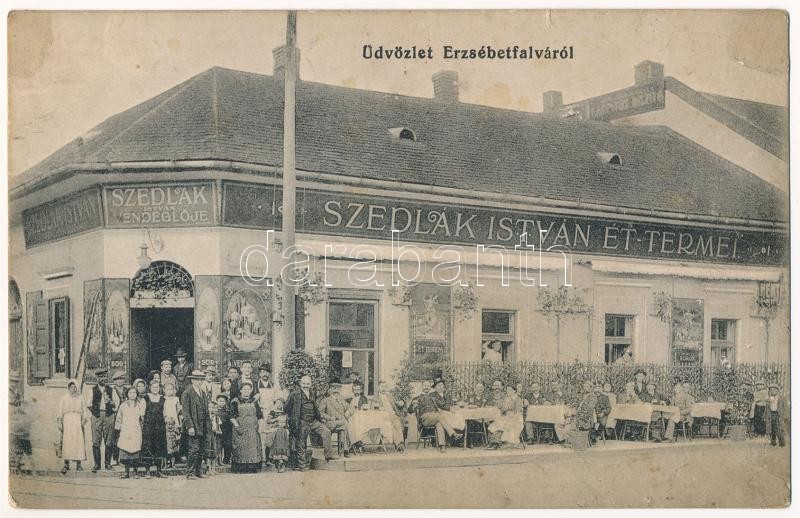 Budapest XX. Pestszenterzsébet, Pesterzsébet, Erzsébetfalva; Szedlák István éttermei és vendéglője, hentes. Lovrich Béla fényképész felvétele (tűnyomok / pinmarks)