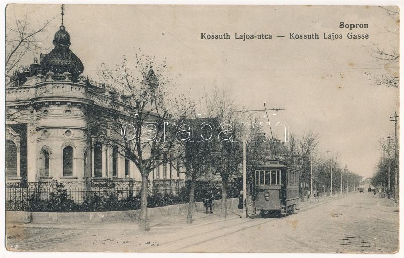 Sopron, Kossuth Lajos utca villamossal, Stauffer villa. Kiadja Monsber... https://www.darabanth.com/de/38-Gross-Auktion/38.1/Ansichtskarten/Ungarn~15644/Sopron-Kossuth-Lajos-utca-villamossal-Stauffer-villa-Kiadja-Monsberger-fl~II2601332