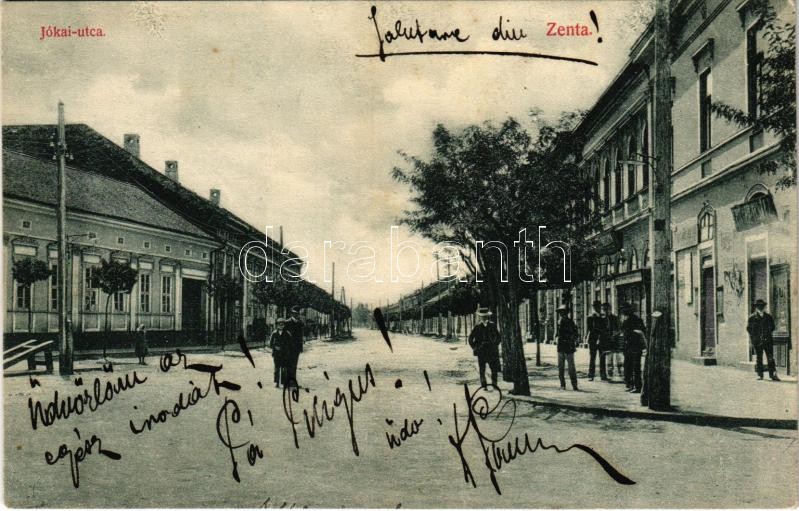 1908 Zenta, Senta; Jókai utca, üzletek. Molnár Sz. Vince kiadása / str... https://www.darabanth.com/de/38-Gross-Auktion/38.1/Ansichtskarten/Vojvodina~15652/1908-Zenta-Senta-Jokai-utca-uzletek-Molnar-Sz-Vince-kiadasa-street-shops~II2614241