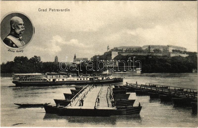 Újvidék, Novi Sad; Pétervárad vár, nyitott pontonhíd elhaladó "ST... https://www.darabanth.com/de/38-Gross-Auktion/38.1/Ansichtskarten/Vojvodina~15652/Ujvidek-Novi-Sad-Petervarad-var-nyitott-pontonhid-elhalado-STARCEVIC-gozhajoval-Verla~II2611956
