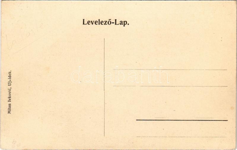 Újvidék, Novi Sad; Szentháromság szobor, Városháza, piac. Posta-Utalvány montázs postással és pecsétekkel. Milan Ivkovic kiadása / town hall, Holy Trinity statue, market. Postal money order montage with postman and stamps (fl)