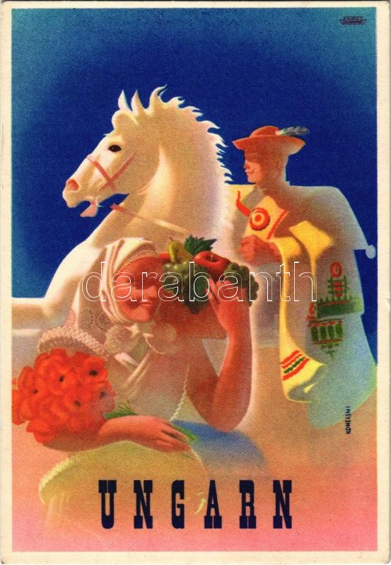 Besuchet Ungarn! Ungarisches Landesamt für Fremdenverkehr / Magyar turisztikai reklám. Klösz / advertisement of the Hungarian National Office for Tourism, folklore. s: Konecsni + So. Stpl