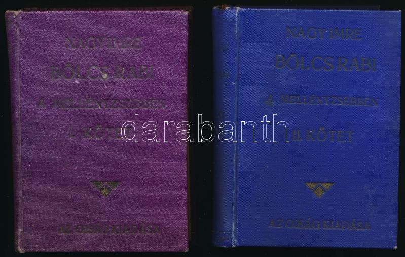 Nagy Imre: Bölcsi Rabi a mellényzsebben. I. és II. kötetben. Bp.,(1925... https://www.darabanth.com/de/38-Gross-Auktion/38.1/Bucher/Bucher-Judaika~15607/Nagy-Imre-Bolcsi-Rabi-a-mellenyzsebben-I-es-II-kotetben-Bp-1925-Az-Ojsag-320-320-p-~II2613471