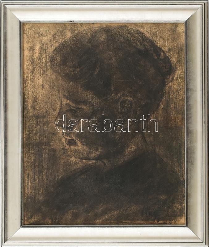 Nagy István (1873-1937): Gyerekportré. Szén, papír, jelezve jobbra lent, üvegezett fakeretben, 40,5x32 cm / István Nagy (1873-1937): Child portrait. Coal on paper, signed lower right, framed, 40,5x32 cm