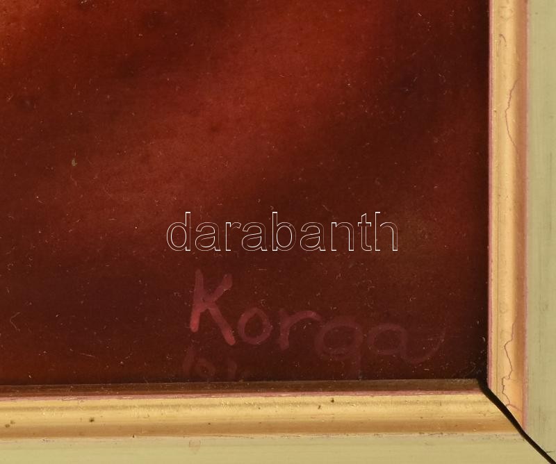 Beschreibung: Korga György (1935-2002): Tengerparti kaland. Olaj, farost. Jelzett. Keretezett. 60x80 cm