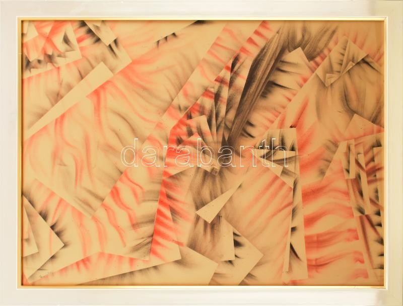Beschreibung: Ruzicskay György (1896-1993): Struktúrák. Vegyes technika, papír, jelzett, üvegezett fakeretben, 50x70 cm